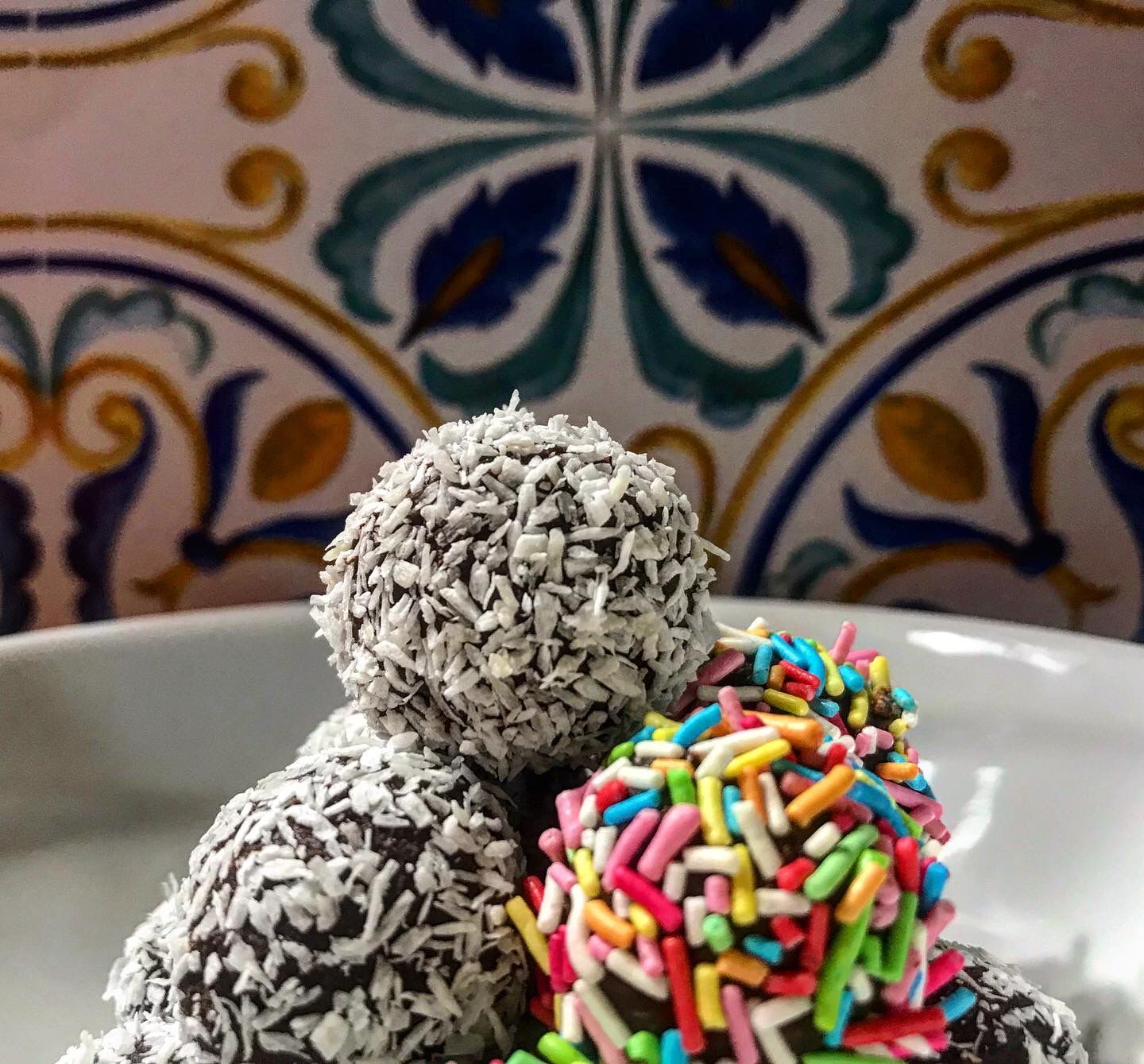 In un pentolino scaldate la panna con il miele e appena bolle versate il cioccolato tritato.Mescolate con una frusta finchè non si addensa,aggiungete il rum e dopo aver amalgamato conservate in frigo per almeno due ore.Appena freddo formate delle palline e passatele nella farina di cocco/cacao/codette colorate.